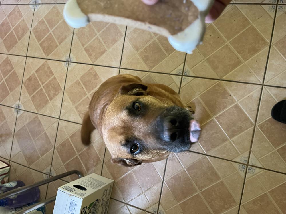 Pet Description:She’s a large dog not too sure exactly what breeds but if I were to guess she’s got some mastiff, German Shepard, and lab in her. She’s super friendly and will probably just walk right up to you if you call her. |