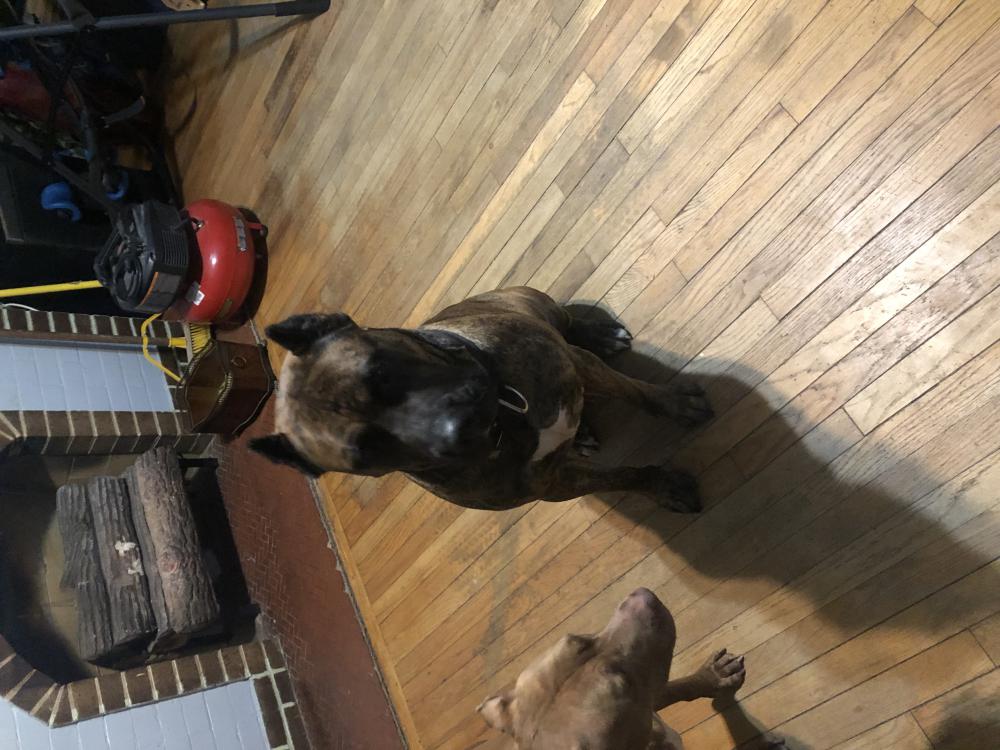 Pet Description:Brindle, black and brown he’s a very large dog his age he’s 3yrs old he’s ears are clipped he has a white spot in the center of his chest |