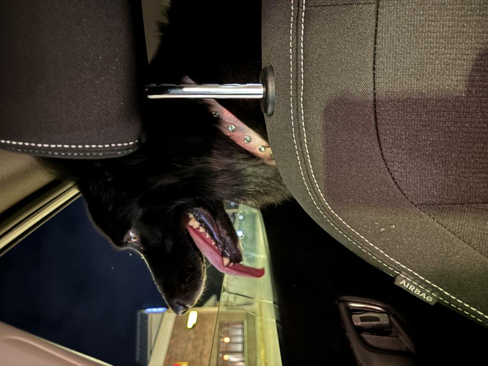 Pet Description:Large long haired black dog with a bit of white on the tips of her paws. Sweet but incredibly nervous. Mixed breed I think possibly German shepherd? |