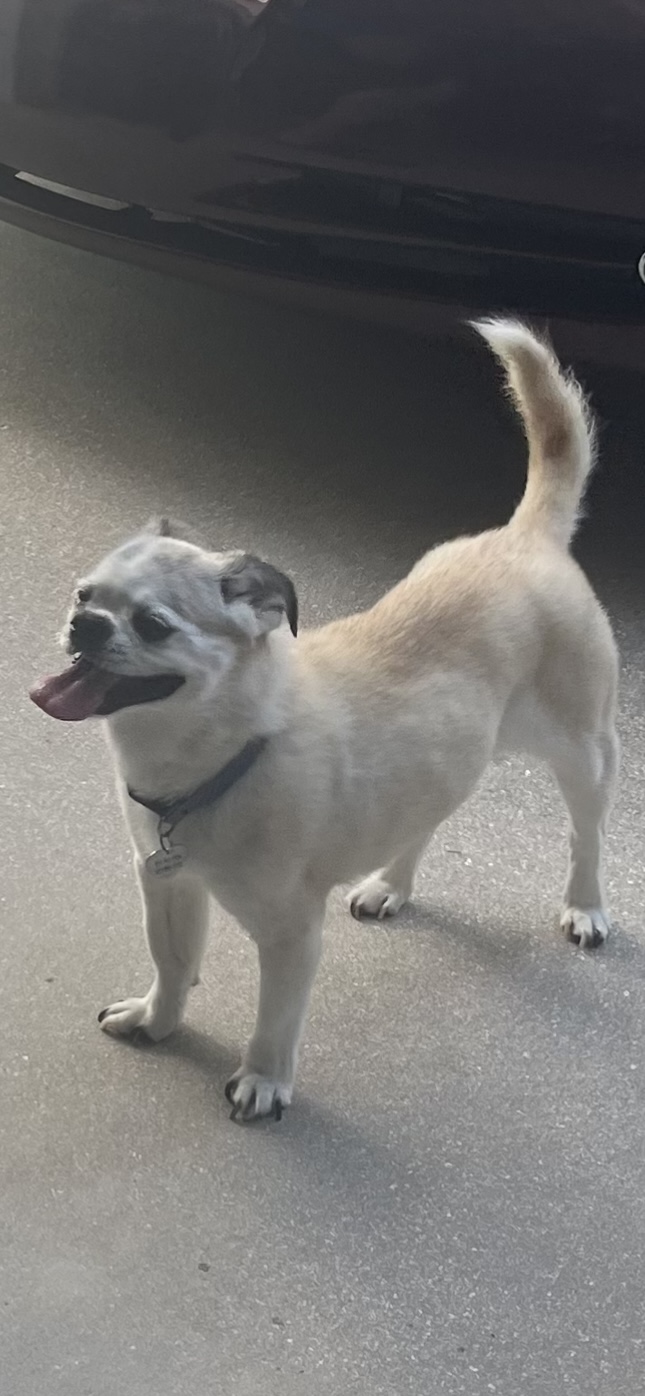 Pet Description:pug/beagle breed. small, 13 pounds, tan color |