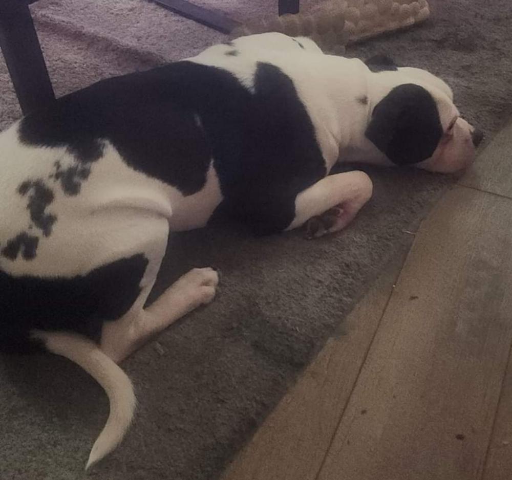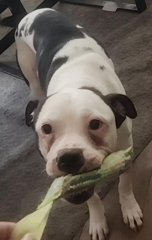 Pet Description:Black and white pit, medium build, approximately 60-70 pounds. |