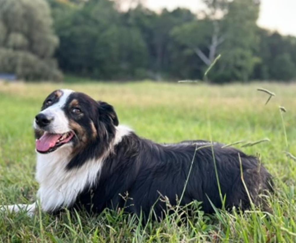 Pet Description:June is a black/ white tri color female Australian Shepherd. |
