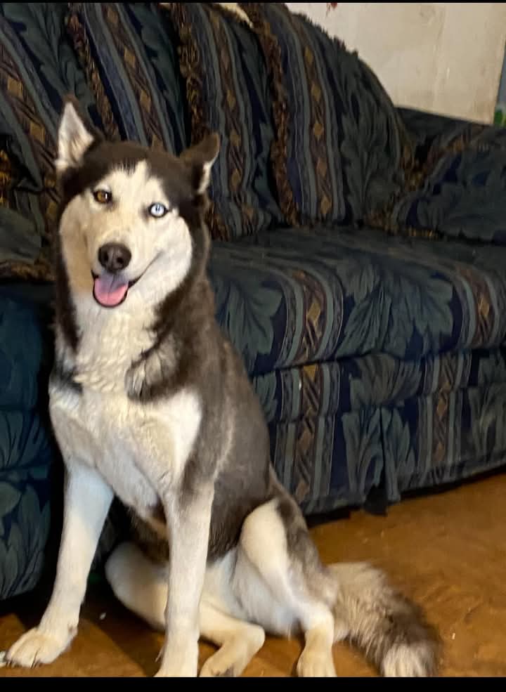 Pet Description:Solid white nose. Has cross on her face. She has 1 blue eye and 1 brown eye. She is very sweet. Loves attention. |