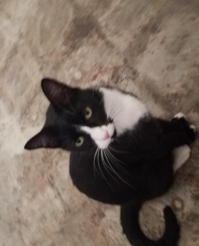 Pet Description:Male neutered black and white tuxedo. Has a blue/black checkered collar. |