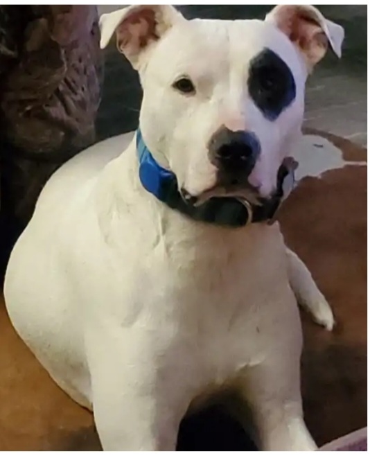 Pet Description:White dog about 60lbs has a black eye. Very sweet. Goes by the name Jack. |