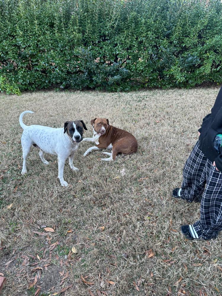 Pet Description:Brown coat, white belly, has a female dog with him. He has a red collar. Both dogs are sweet and love people, the brown dog gets very excited |
