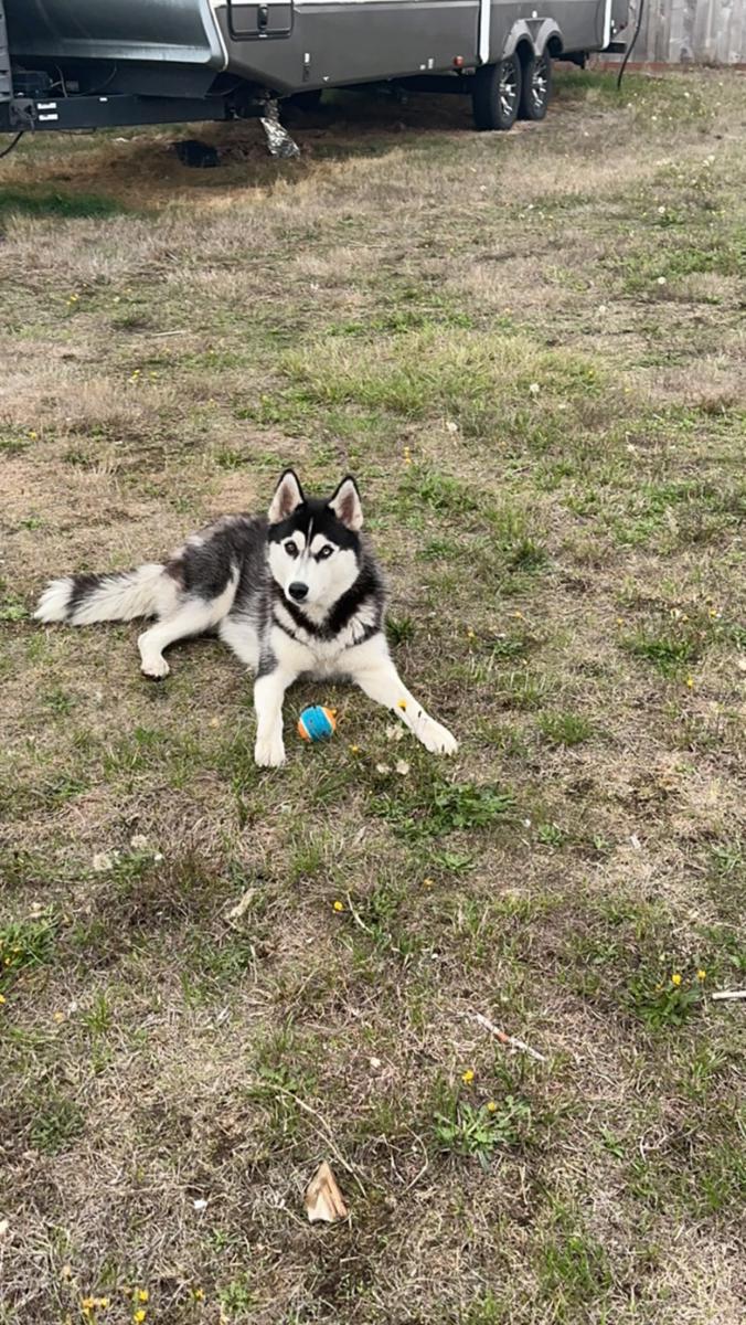 Pet Description:Pure bread Siberian husky, one blue eye one brown eye, curly fluffy tail, super friendly |