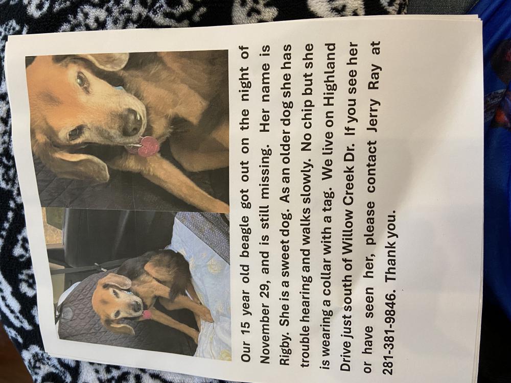 Pet Description:Sweet older dog who walks slowly. She’s a sweet dog and we love her dearly. See photo for more description. |
