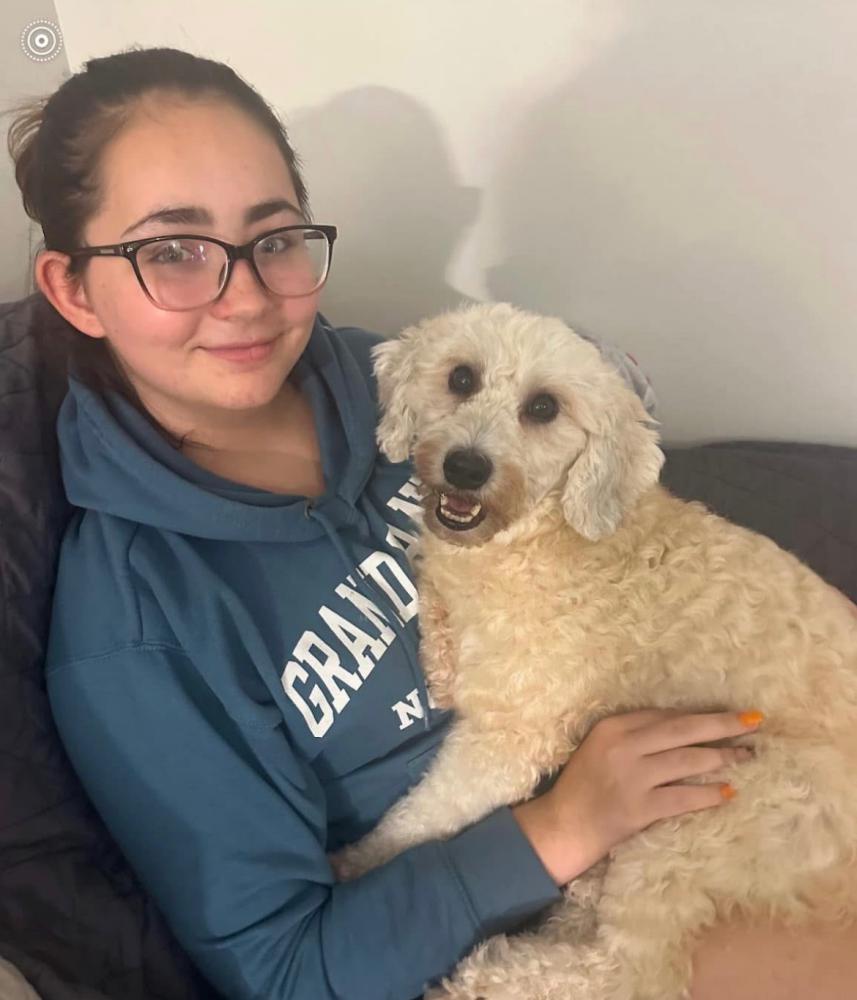 Pet Description:She is small, white, poodle mix, about 19 pounds, and is mircochipped. |