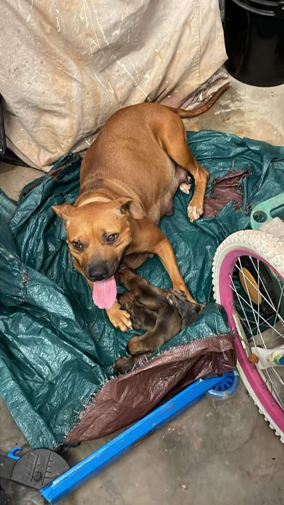 Pet Description:Carmel brown eyes, had a collar on that was dirty and is a brown short haired medium boxer pit mix, will answer to Suki, black nose and mouth, had babies a few months ago |