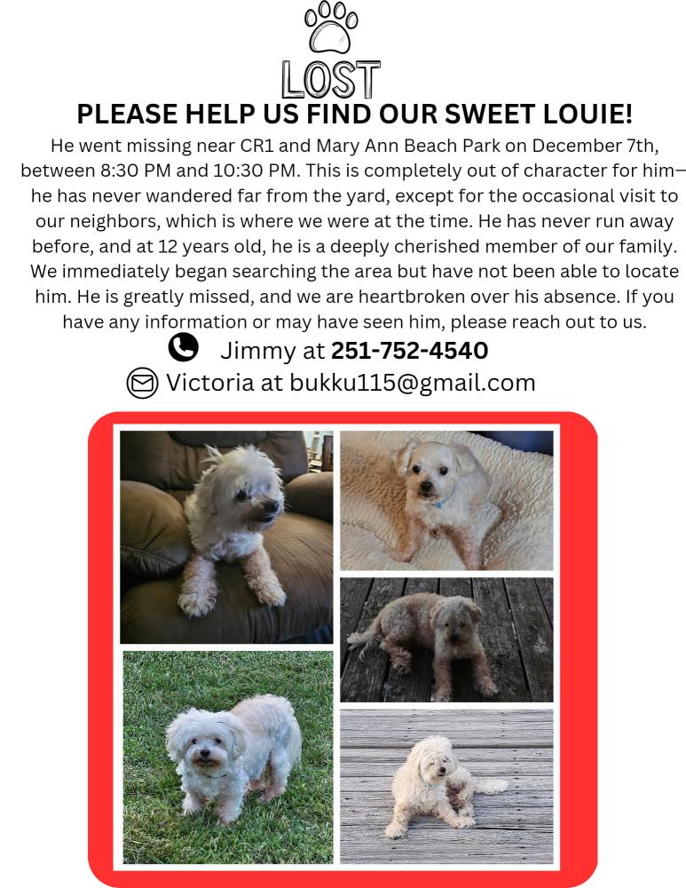 Pet Description:Louie is a White Maltipoo. He has shorter hair on his back half than front half. I thought I would try to learn to groom and figured out it is not as easy to do. So his haircut is not professional looking due to the unevenness. He is very friendly with the ladies, not so much with the guys, usually barks at them. |