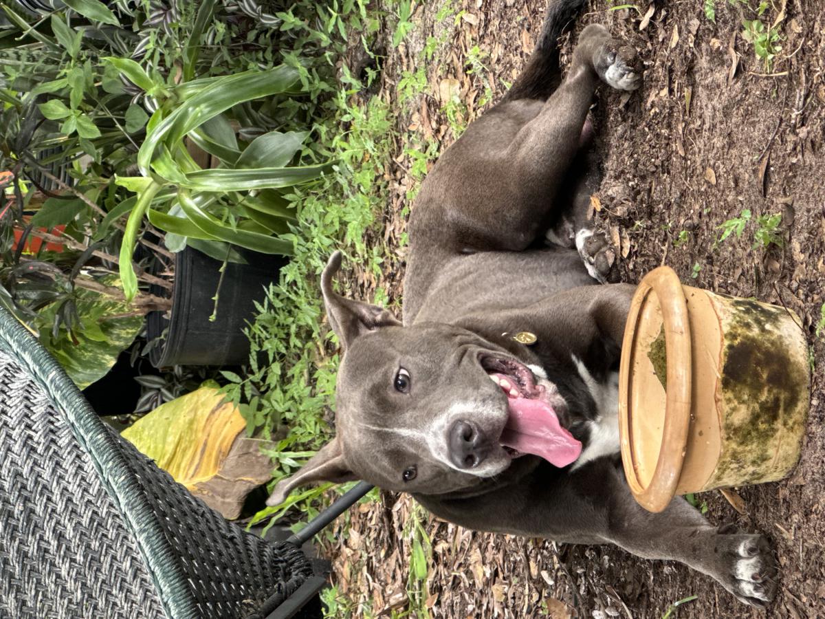 Pet Description:He is a mixed pitbull and ridgeback he has a light blue collar and he is a rescue dog scared of people but sweet he is 1 year old |