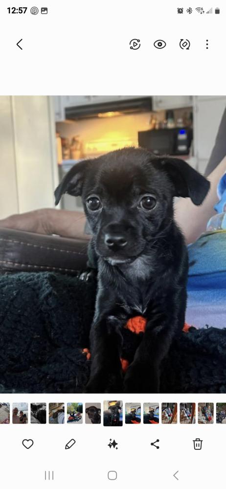 Pet Description:All black little white on chest n 3 toes 10 pounds had a black collar with a harley davidson tag with his name and my number on it |