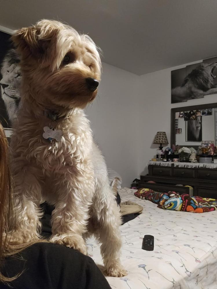 Pet Description:Yorkie poo 2 years old , tan silver and little black friendly playfulPlease help bring him home |