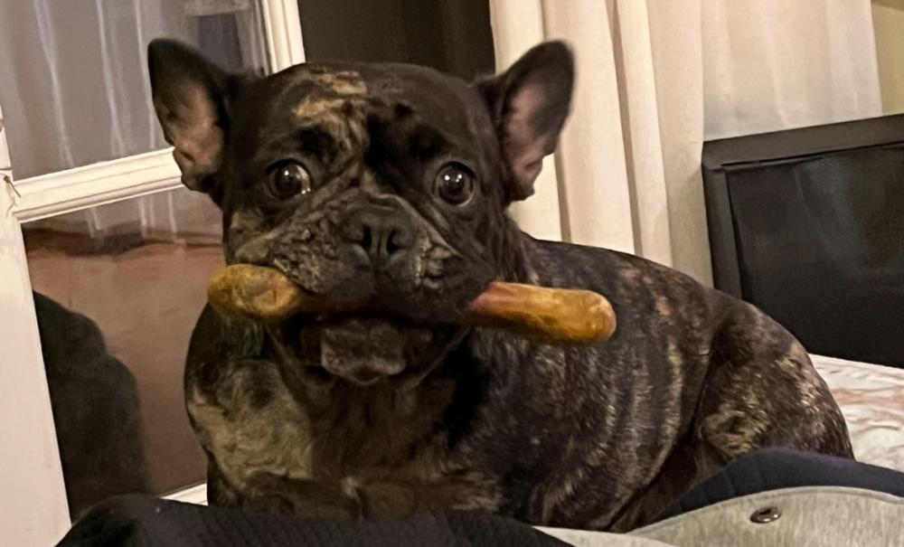 Pet Description:2 year-old small black and tan colored Merle French Bulldog, approximately 25-30 pounds, personality kind, friendly, calm, sweet girl. |