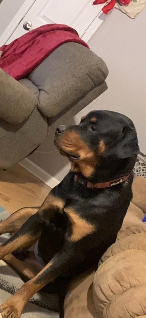 Pet Description:Tall, sweet boy. Intact, long legs & big feet. Docked tail, dew claws removed. Has a deep bark. |