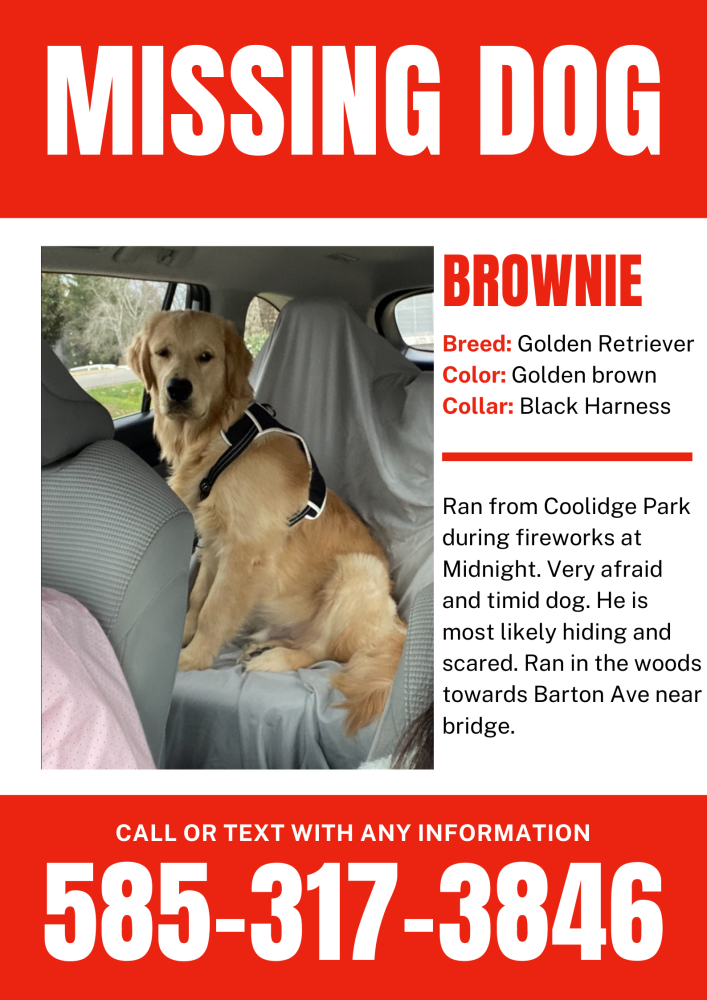 We lost him in the coolidge park during the fireworks at 12 am . |
