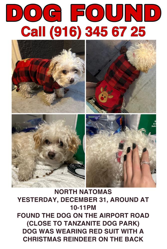 Pet Description:White smal Maltese , Christmas red suit with Christmas reindeer and pink collar |