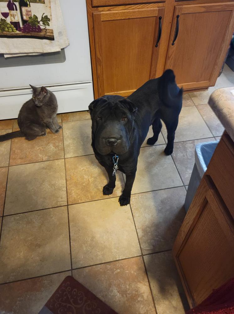 Pet Description:Shadow weighs close to 70 lbs. He has ear issues and shakes his head repeatedly. He's shy. Use a collar he can't wiggle out of with all the extra skin around his neck, such as a martingale collar. |