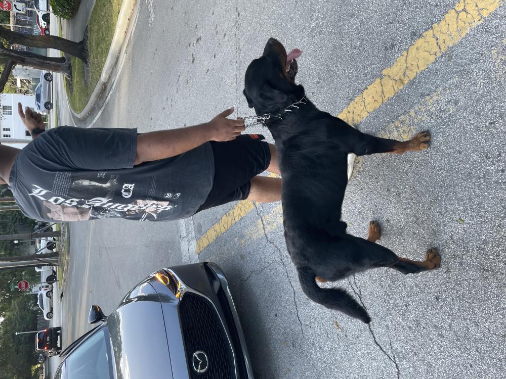 Pet Description:Black with brownHas a chain link collar-Being taken to local vet |