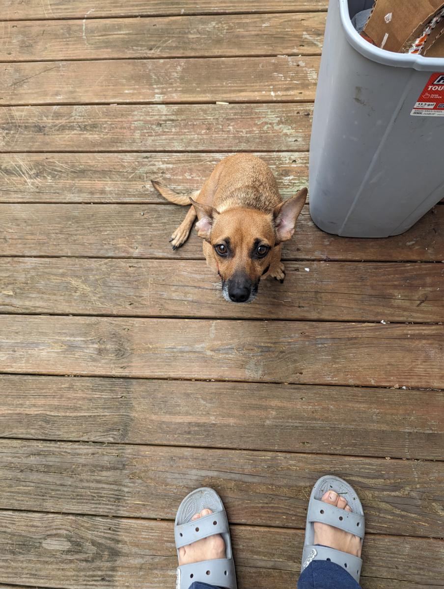 Pet Description:She is a small dog my daughter let her out was watching from one window to another window and the time she got back to the first window she was gone she is pregnant |