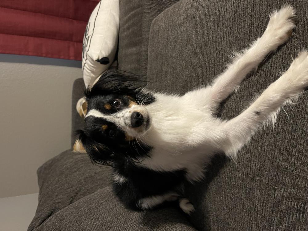 Pet Description:Tri Color toy Australian shepherd, about 12 inches tall and 10-12 pounds. She is shy and scared of strangers and is likely very scared. |
