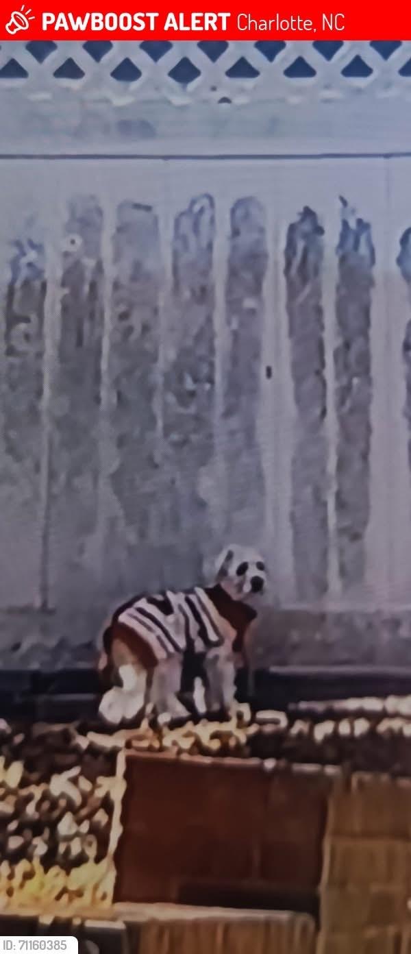 Pet Description:She is a medium dog size pet, white and has brown spots in her eyes. She is very shy and scared of people. Last time seen was wearing a red/white coat. |