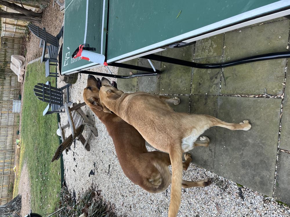 Pet Description:Two dogs. Male and female. Male is slightly larger and more red. Not fixed. |