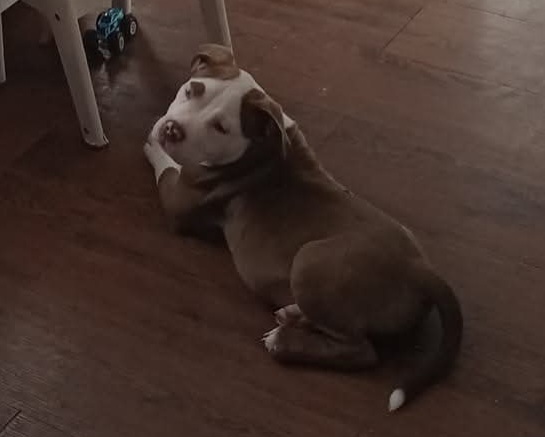 Pet Description:Charlie Brown with stolen from my house in Hawkins his white and kind of a brownish red Old English bulldog and American Staffordshire terrier mix he's still just a puppy he's about 5 months old |