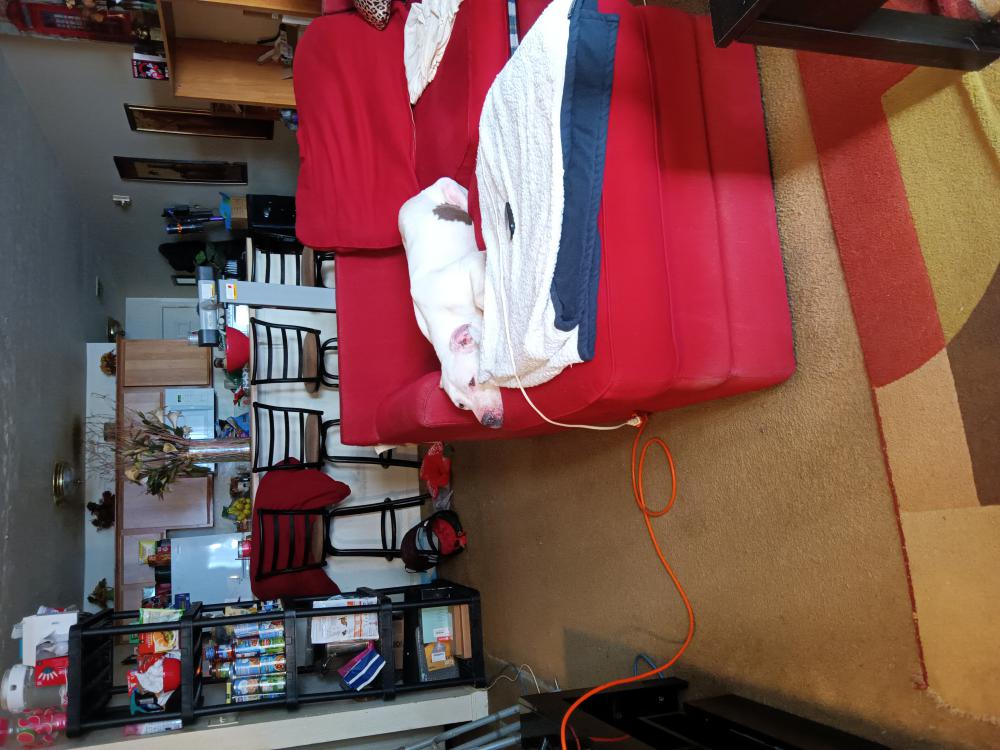 Pet Description:White pitbull with brown spots approximately 1 to 2 years old very friendly I found him 2 days ago and I've been keeping him in my house he is super friendly, housebroken and crate trained. Looking for owner and /or a loving family to provide a good home I would keep him but I already have four animals and not enough room |