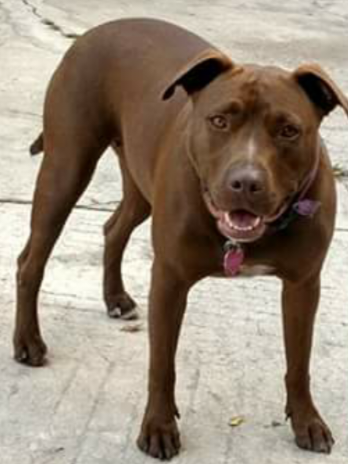 Pet Description:Pit/lab mix. Female Spayed, 70 lbs brown/Ginger tint. White patch on chest and rear paw. Answers to Koko. No collar. |
