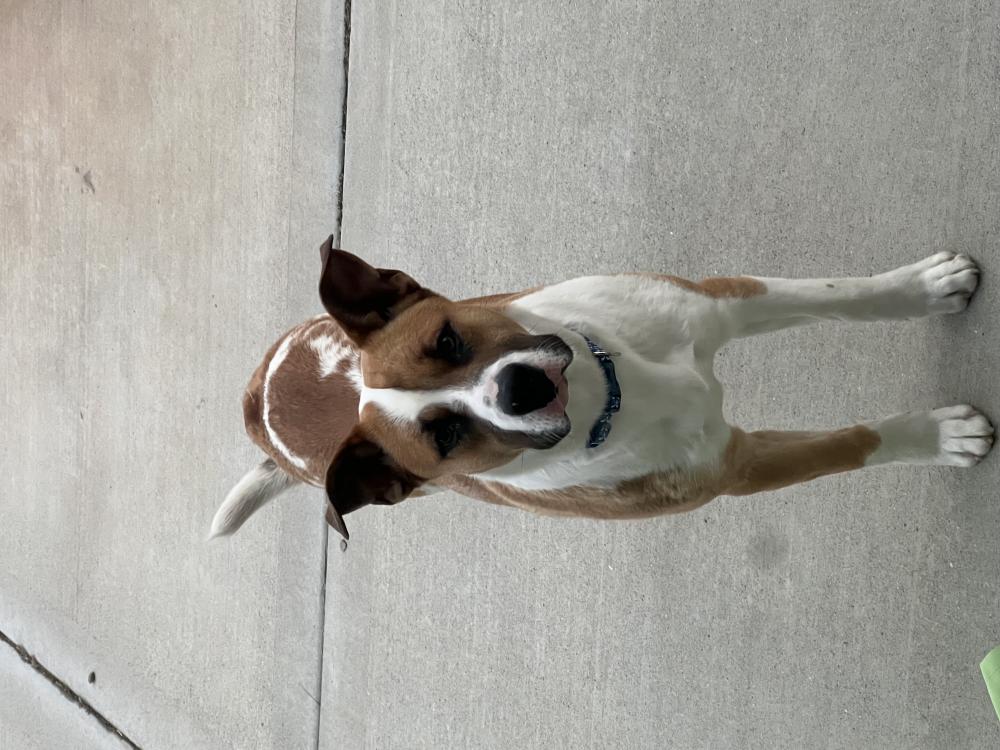 Pet Description:Sweet Brown and white medium size dog found running on gander and Eastlake at night on Monday feb 3, |