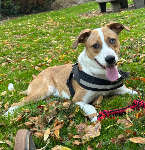 Pet Description:He has a brown and blue eye he's light brown and white |