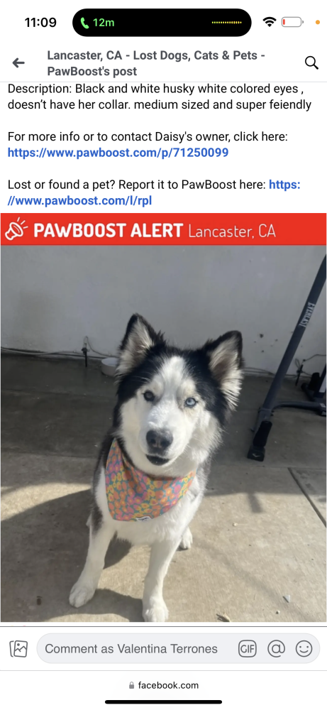Pet Description:She is a black and white husky and has no collar. She has different colored eyes(blue and black) and is medium sized and is super friendly please take her in and contact us. Her coat is big and soft, long fur! PLEASE Contact us at 661-445-7959 or 818-326-4435 |