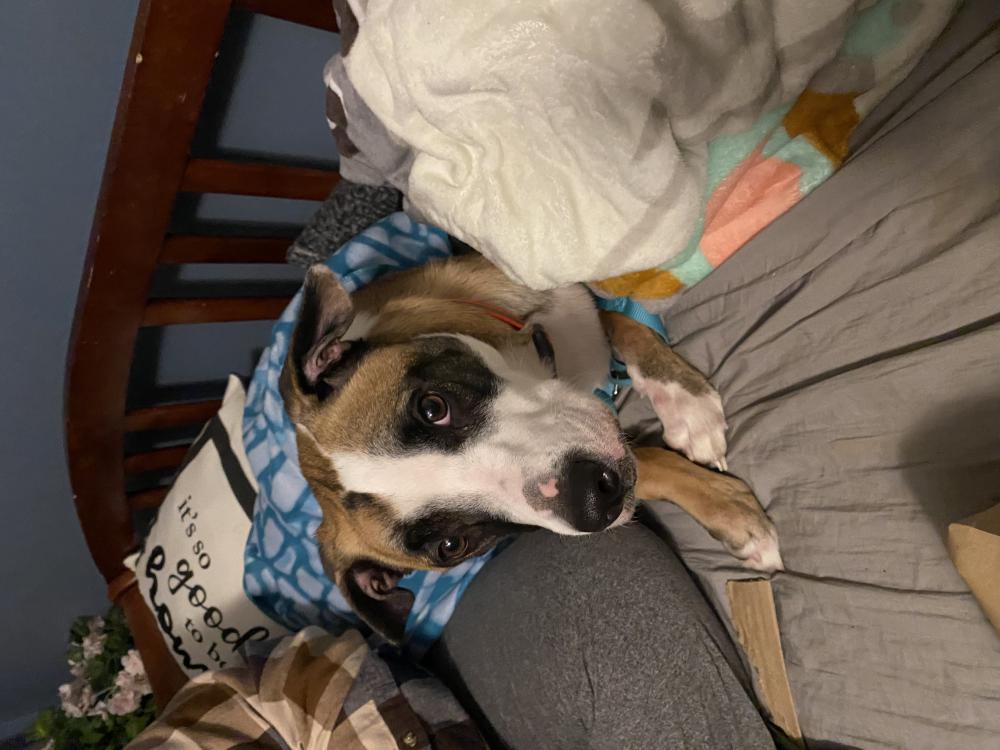 Pet Description:Brown, white and black border collie mix age 2. Super shy but friendly. Has what looks like an arrow on his nose |