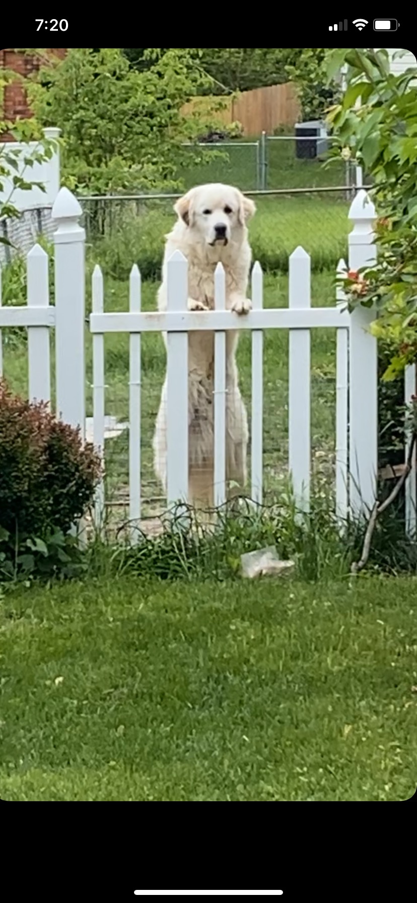 Pet Description:Large, white Great Pyramese with a light brown ear. |