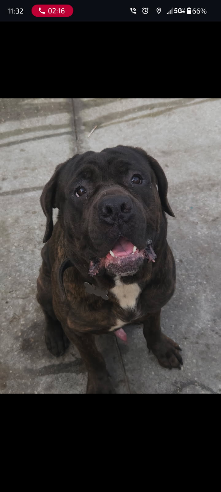 Pet Description:He’s big, friendly but shy and will likely run away if approached. Has big paws, brindle black and brown |