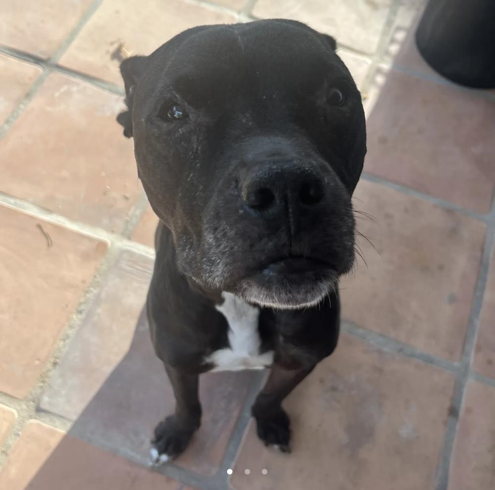 Pet Description:Black with white chest and 3 white paws. 10 years old. Gray fur on face. About 40 pounds. No collar. Microchipped. Very friendly, loves people. |