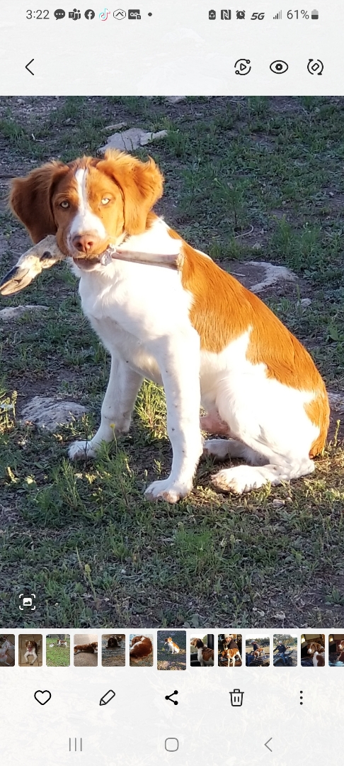 Pet Description:4 year old red and white Brittany. Collar not on |