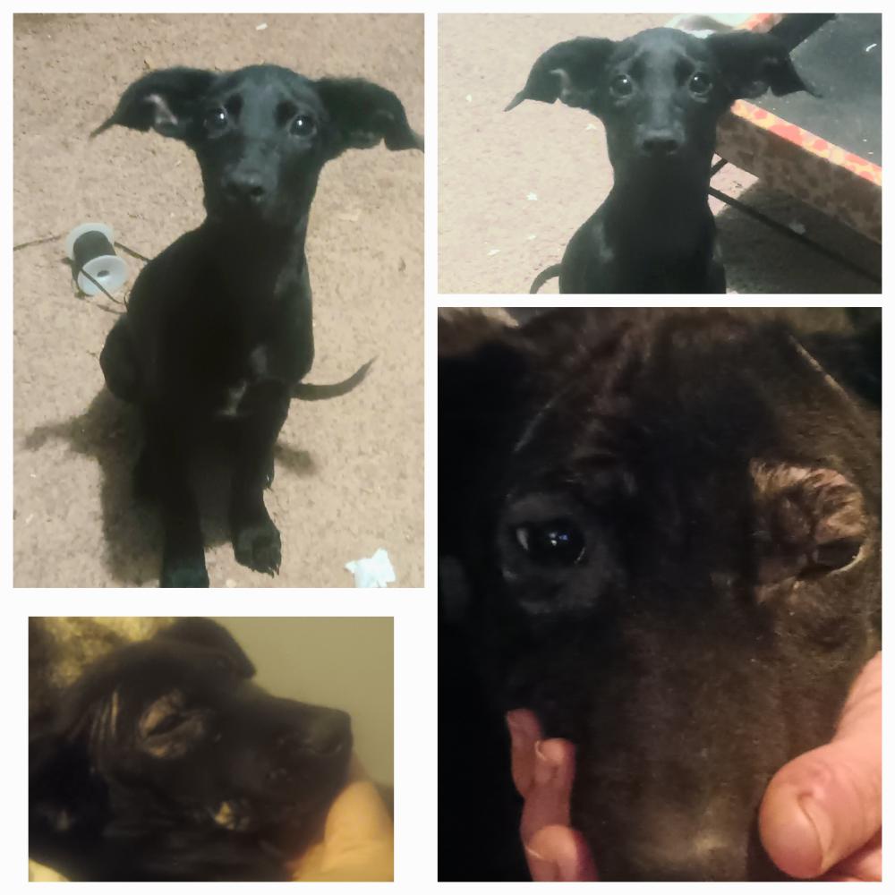 Pet Description:DESCRIPTION - HER NAME IS BEANIE ( sometimes will answer to BEAN or MEAN BEAN when she was picking at her siblings lol and she knew the difference like when I heard my middle name then I knew I was in trouble lol ) SHE IS A BLACK FEMALE 8 MONTH OLD LAB MIX PUP THAT IS JUST UNDER ABOUT KNEE HIGH ( on a short person that is) HER FACE IS BROKE OUT DUE TO BEING ALLERGIC TO SOMETHING (not the mange I'm afraid ppl might think she has mange or something like that and she not be s likely to find |