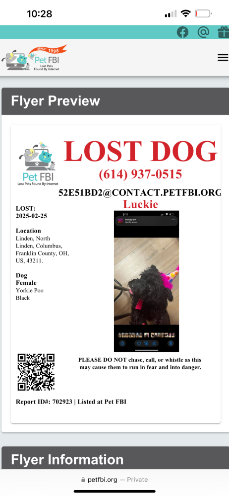 Pet Description:She’s black with white tips on her paws her collar is pink with out number on the back |