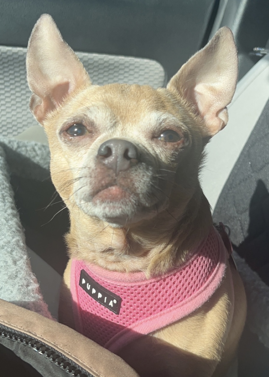 Pet Description:9lb chihuahua spayed female short nun tail small green tattoo |