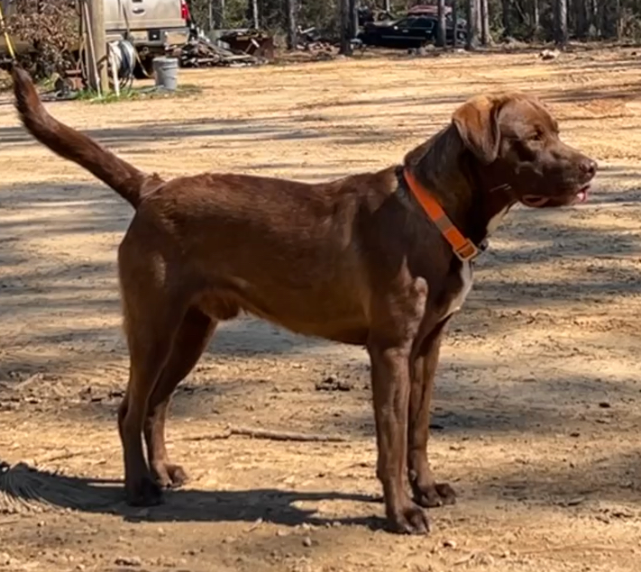 Pet Description:Boudreaux is a two year-old , half American bulldog - half lab . He’s a big baby ! Extremely friendly . Treat driven . He does not have tags on, but he does have a Carhartt collar in the color bright orange on . |