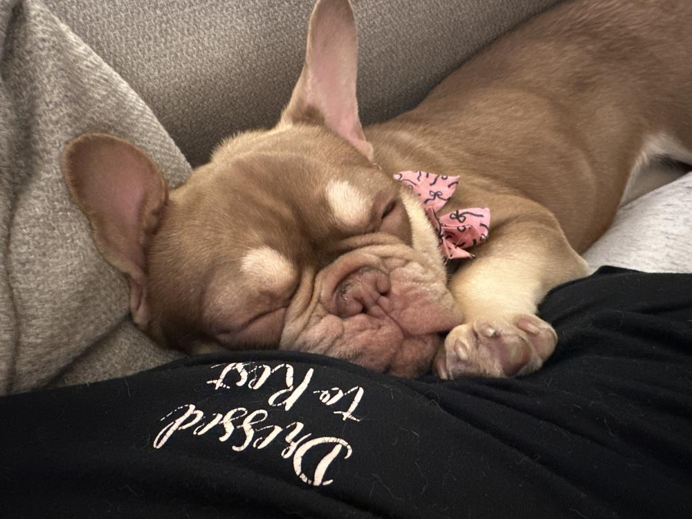 Pet Description:Tri-colored, medium sized French bulldog. She has a pink collar with and AirTag and Id tags. She is friendly and will come to you. Please help me get her home. |