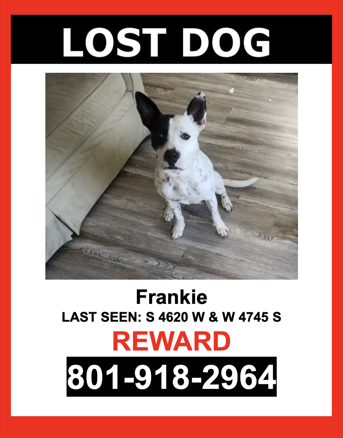 Pet Description:**MISSING SINCE 3/11/2025 AT 4:00 PM**Frankie is a female, black & white, Pit Bull Mix who escaped and was last seen near S 4620 W & W 4745 S.Frankie is wearing her black collar and IS microchipped.If you see Frankie please DO NOT CHASE HER.PLEASE CALL OR TEXT ONLY.801-918-2964$$ Reward $$ |