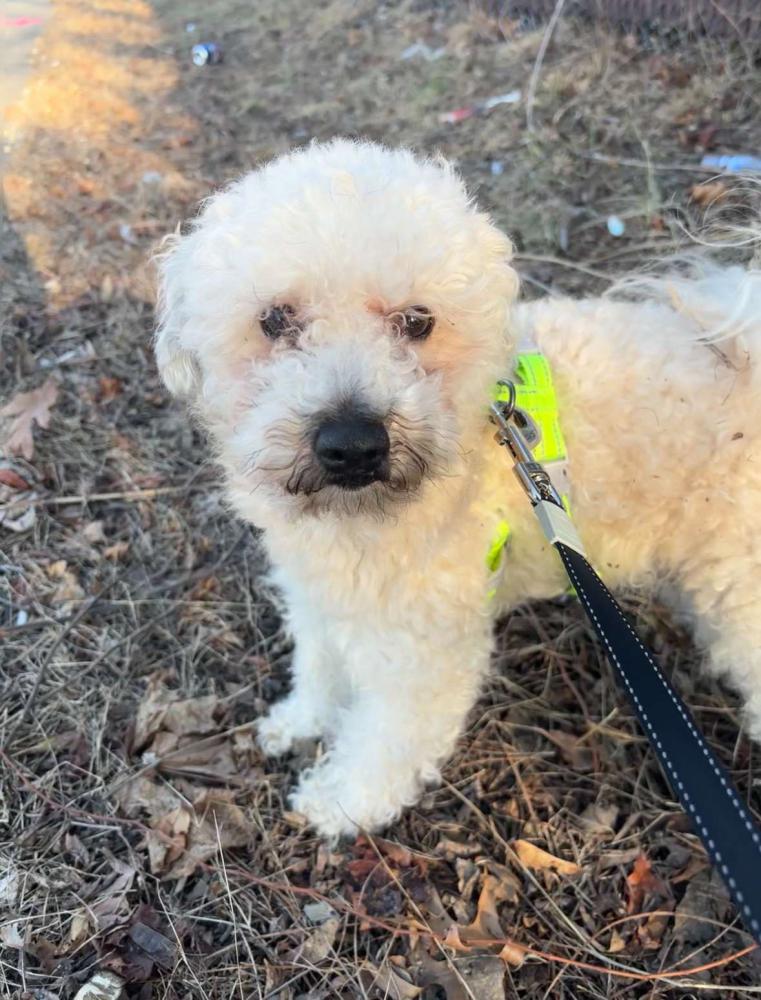 Pet Description:he’s a male, small, hair curly, color white and a bit tan, and will run if someone chases him |