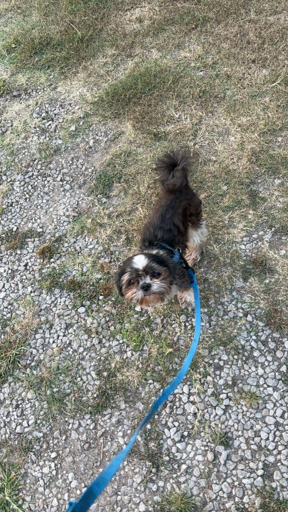 Pet Description:Small, elderly black and white shih tzu who is mostly deaf and blind. He walks with a sway in his rear. No collar, last seen wearing 2 gray sock on his rear legs. |