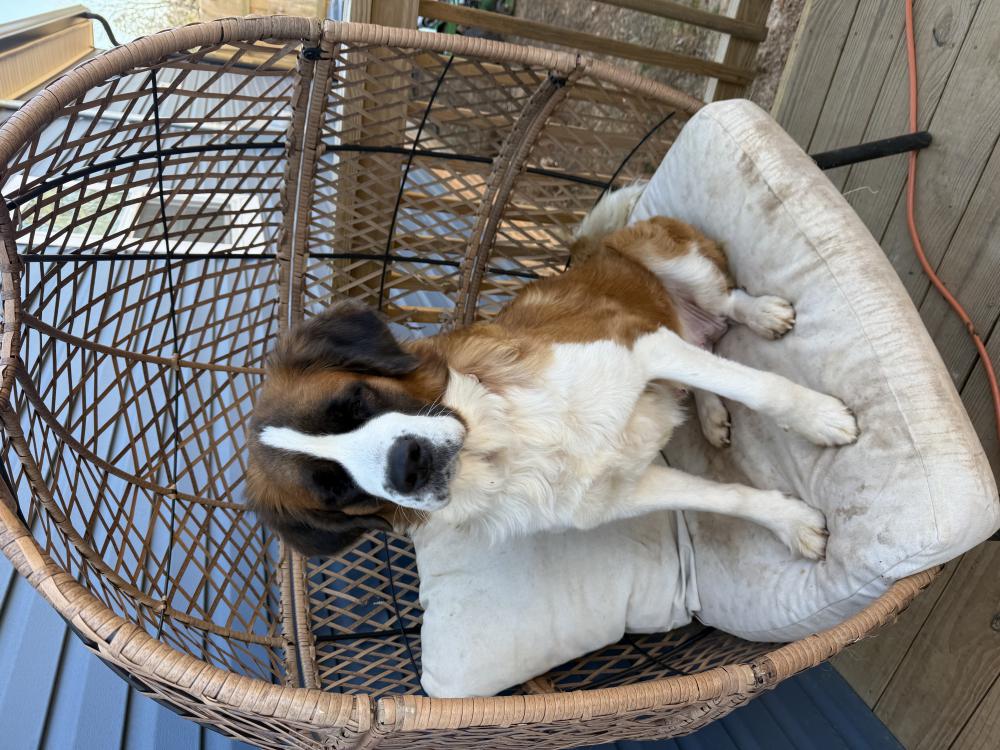 Pet Description:Saint Bernard large dog 100lbs with pink and grey collar. Very sweet |