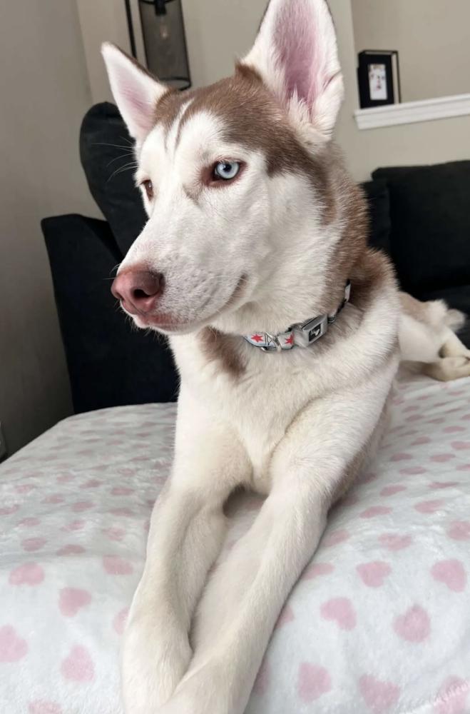 Pet Description:Brown and white hair and one blue and one green eyes. |