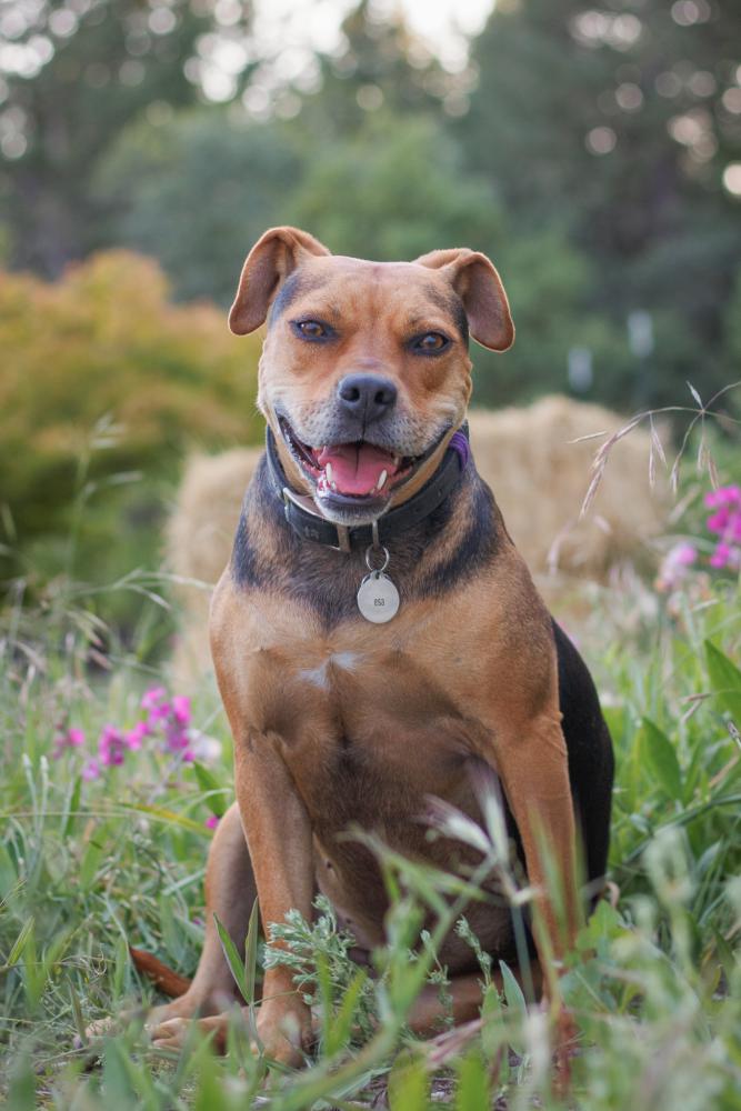 Pet Description:Esa is a very friendly 50 lb female black & brown boxer/pit mix with a black collar and tags. |